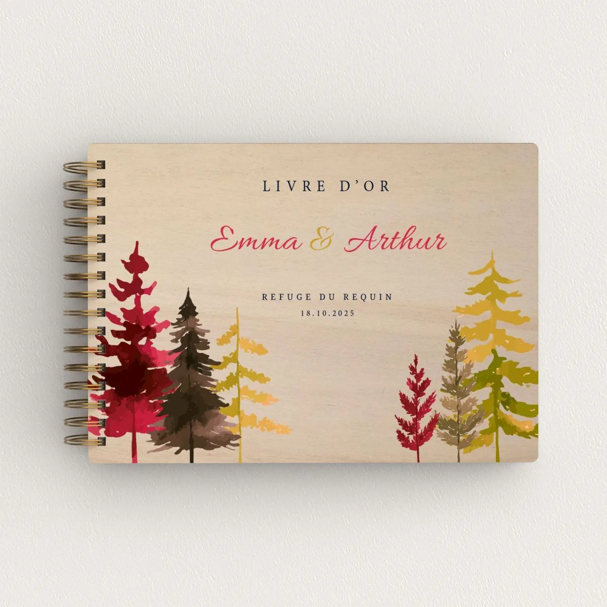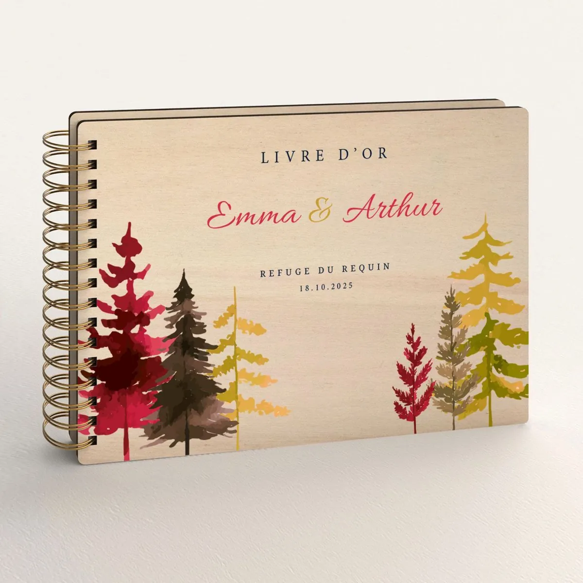 Livre d'or de mariage en bois personnalisé - En peuplier - Sapins automne