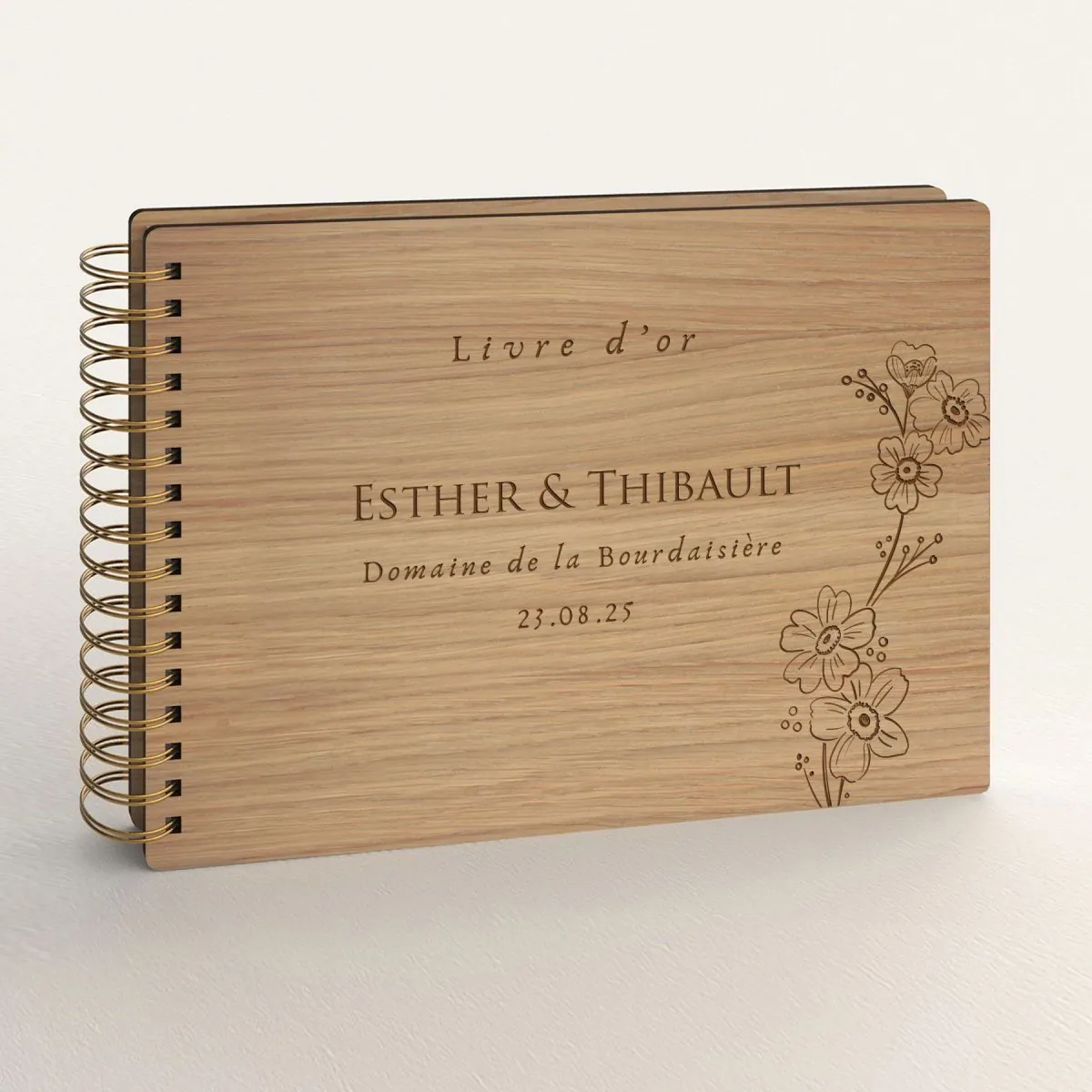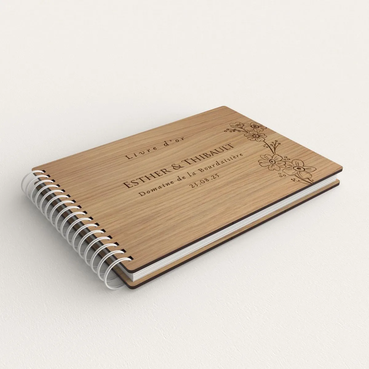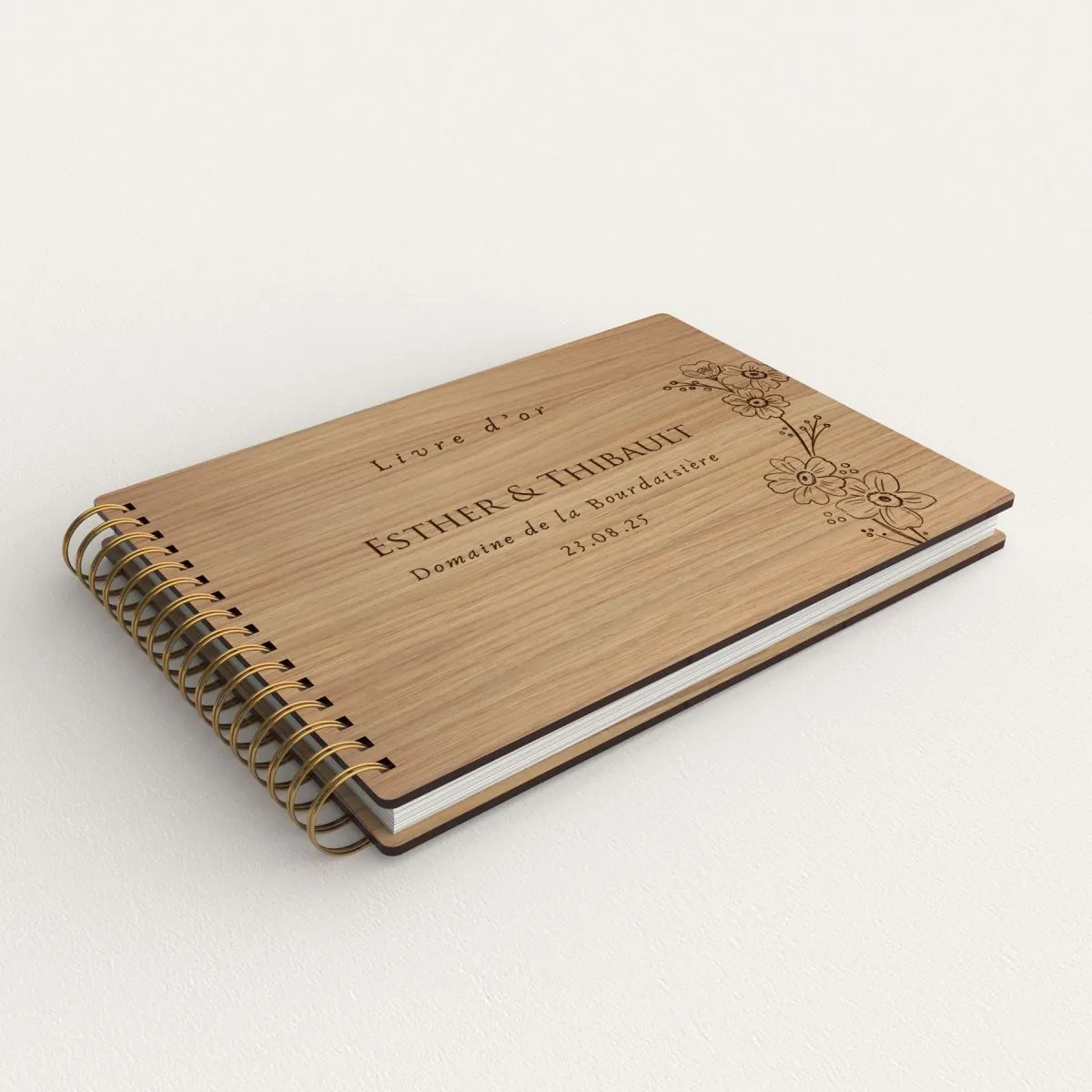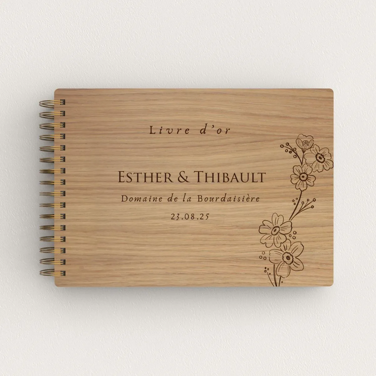 Gravure sur bois - Chêne (qualité ébénisterie)Orientation paysage - environ 80 feuilles blanches 160g Anneaux métalliques Gravure sur bois - Chêne (qualité...