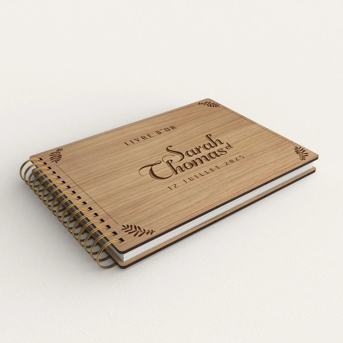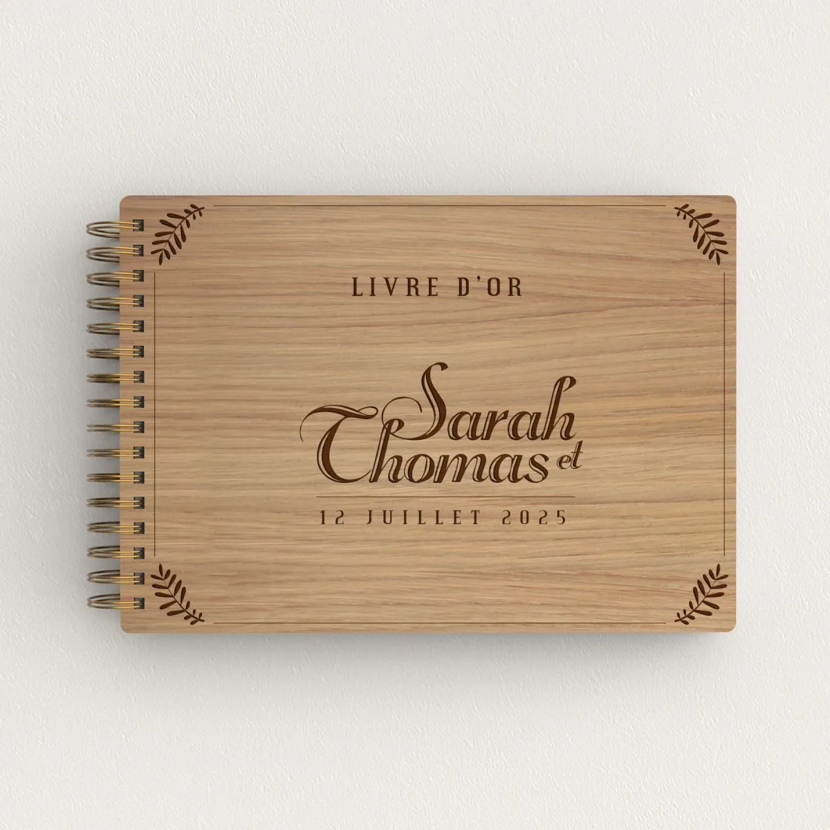 Gravure sur bois - Chêne (qualité ébénisterie)Orientation paysage - environ 80 feuilles blanches 160g Anneaux métalliques Gravure sur bois - Chêne (qualité...