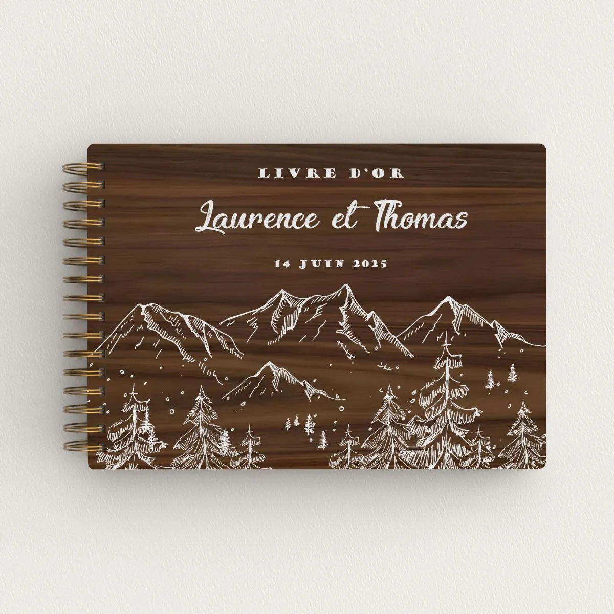 Livre d'or de mariage en bois personnalisé - En noyer - Sommets alpins Livre d'or de mariage en bois personnalisé - En noyer - Sommets alpins