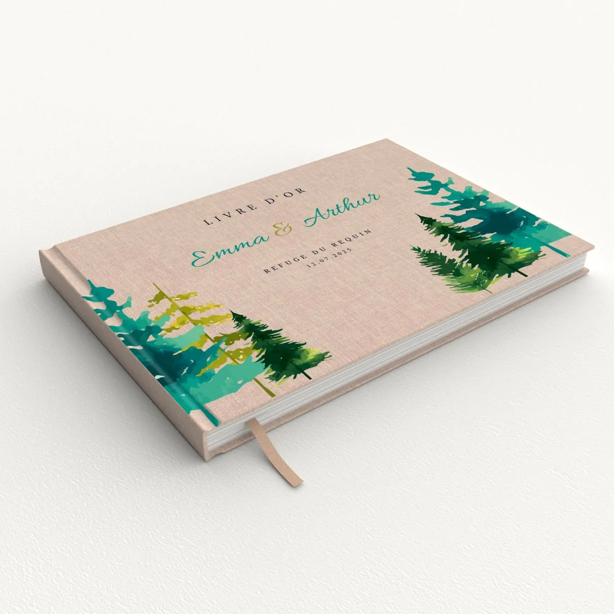 Livre d'or de mariage - Livret aspect lin - Sapins printemps-ete